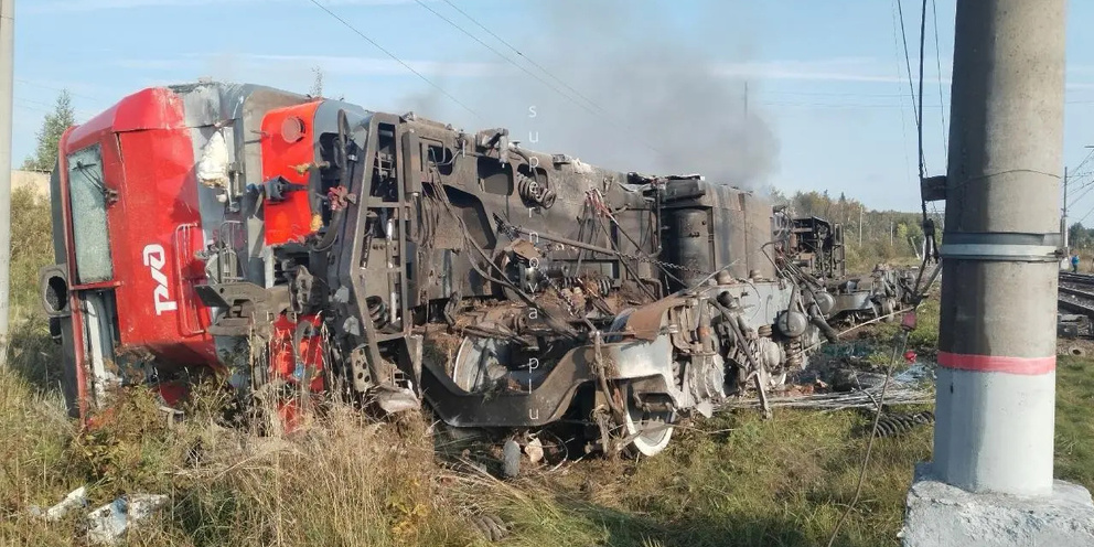Тепловоз сошел с рельсов вблизи станции Семрино в Гатчинском округе Ленинградской области