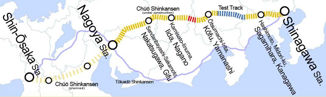 Проект строительства маглев-линии был одобрен Министерством земли, инфраструктуры, транспорта и туризма Японии в 2014 году. Линия Тюо-синкансэн длиной 286 км должна связать станцию Синагава в Токио с городом Нагоя. Изначально планировалось ввести ее в эксплуатацию в 2027 году, однако в 2024 году сроки были перенесены на 2034 год.